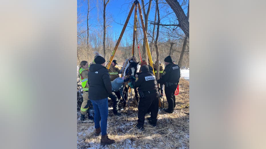 BRANDON TOWNSHIP, Mich. (FOX 2) - It was a rescue mission that involved several people in a northern Oakland County community where two horses fell through the ice in a small pond, with one of them on the brink of death.