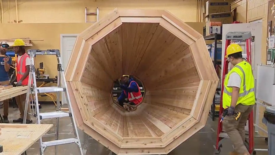DETROIT (FOX 2) - A group of young Detroiters are building a gigantic wooden megaphone that will amplify the sounds of nature on Belle Isle.