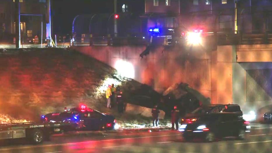 HIGHLAND PARK, Mich. (FOX 2) - One person is dead after a fiery crash at Davison and the Lodge Thursday night. Authorities say that they have been unable to identify that man though