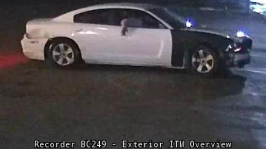 The main suspect behind the deposits was driven around in a white Charger with a black quarter panel with visible damage. Another suspect vehicle was involved but was not caught on camera.