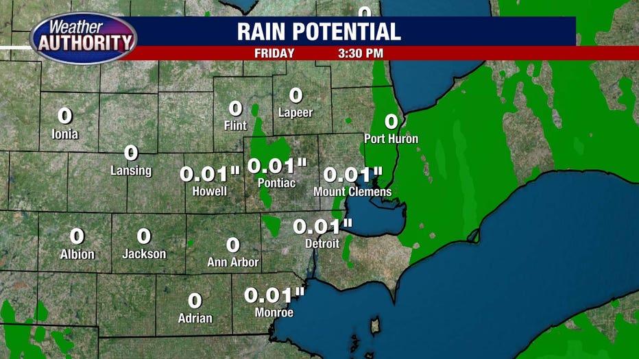 Morning showers will linger in Metro Detroit, though the rain won't be persistent. There is a chance for spotty showers through the midday. Occasionally, some snowflakes could be mixed in with drizzle.