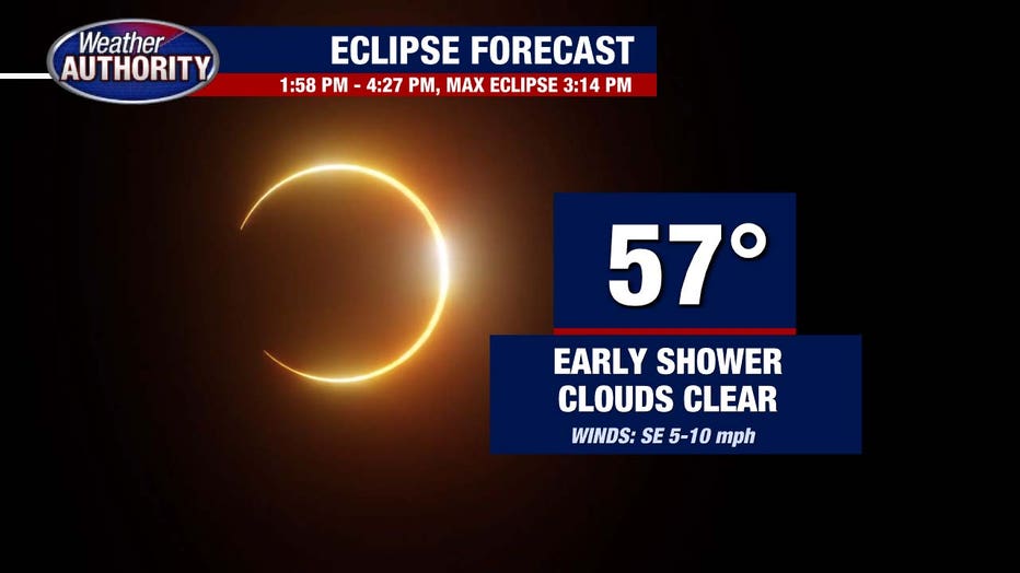 Clouds fade Saturday and stay away into Sunday. However, the question is whether it will be clear or cloudy for Monday's solar eclipse.