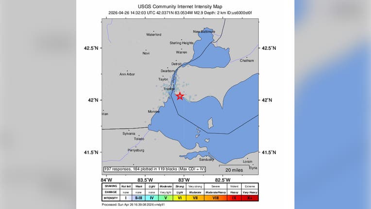 DETROIT (FOX 2) - A 2.9-magnitude earthquake near Amherstburg, Ontario, was felt across parts of southeast Michigan Sunday morning.