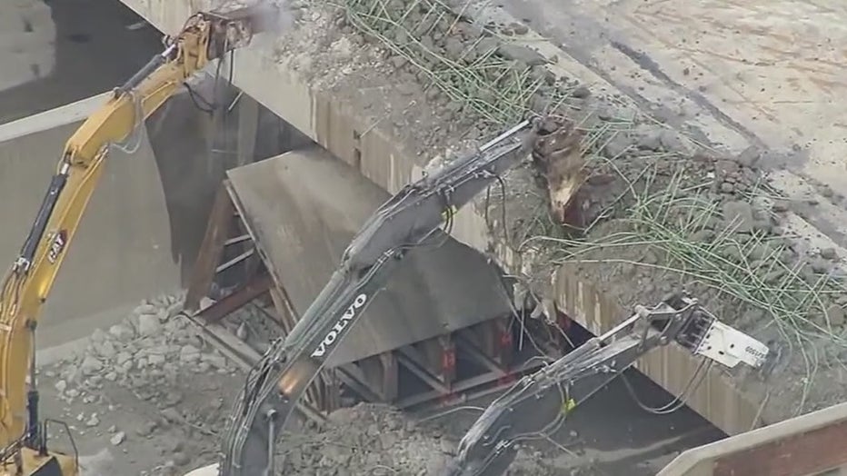 The demolition is ongoing on the eastbound side of the road, which will be closed through late 2026, but the westbound side has re-opened.