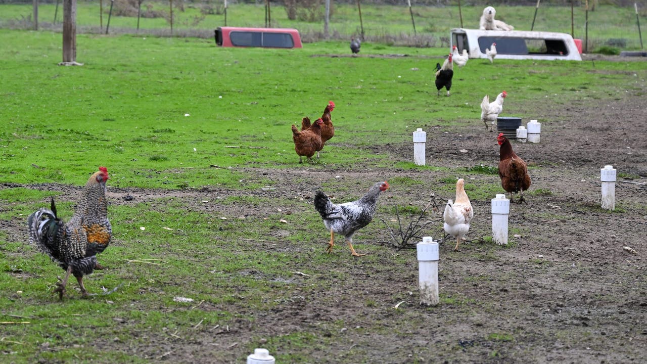 PESCADERO, CALIFORNIA - DECEMBER 20: A view of chickens and roosters at a farm as California declares state of emergency to prevent new public health crisis on Bird flu in Pescadero, California, United States on December 20, 2024. (Photo by Tayfun Co