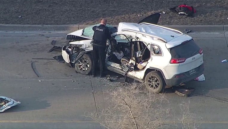On Friday, 18 ½ Mile at Merrill Road in Sterling Heights was closed down after a crash. SkyFOX flew over the scene and saw a white Jeep SUV completely smashed up. It is the only vehicle on that road that appears damaged.