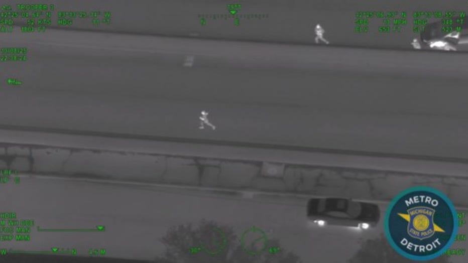 MSP's Trooper 3 was used to help track down the suspect who led police on a chase through the west side of Detroit after 10 p.m.