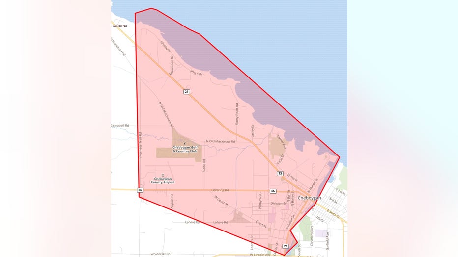 Officials say the affected areas include the US-23 shoreline from Pries Landing south to the Cheboygan River, down to Lincoln St., back along Court St., to Levering Rd., and Inverness Trail, up to the US-23 Shoreline.