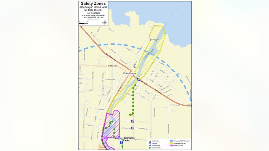 CHEBOYGAN COUNTY, Mich. (FOX 2) - Residents downstream of the Cheboygan dam should prepare their vehicles, families, and pets for evacuation as water levels rise to less than 6 inches from the top of the dam.