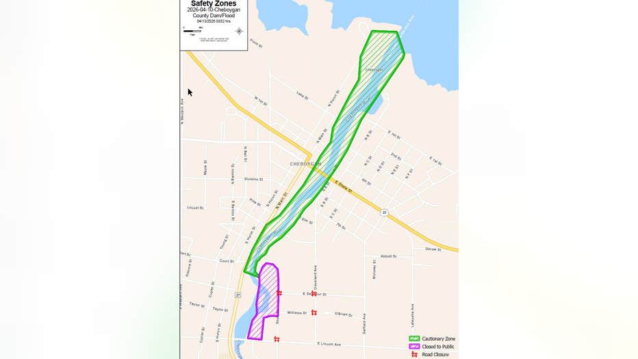 On Monday, the Cheboygan County Sheriff's Office released a map of areas that could be impacted by flooding should water clear the top of the dam.