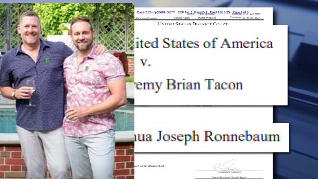 According to federal complaints, Joshua Ronnebaum, 45, and Brian Tacon, 51, who live at the same home in Palmer Woods in Detroit, had exchanged messages alleging they had possessed or sought the video and photos.