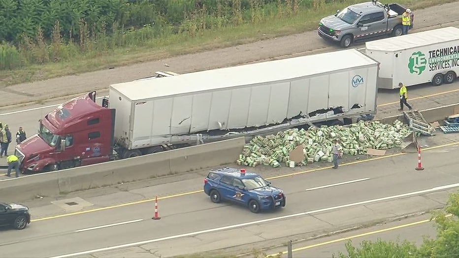 A truck crash has spilled out bottles onto I-94 near Ann Arbor.