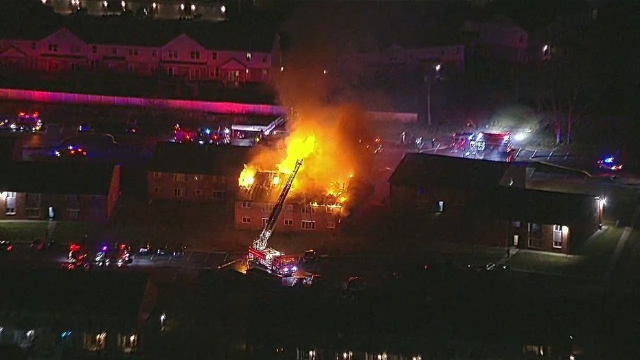 (FOX 2) - Crews battled a large apartment fire in Washington Township, Michigan early Wednesday morning.