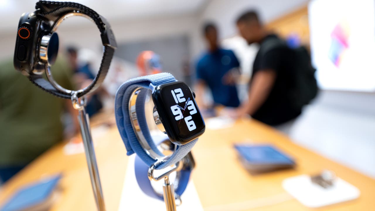 10 July 2025, USA, New York: Various models of the Apple Watch Series 10 are on display at the Apple Store on 5th Avenue in Manhattan. Photo: Sven Hoppe/dpa (Photo by Sven Hoppe/picture alliance via Getty Images)