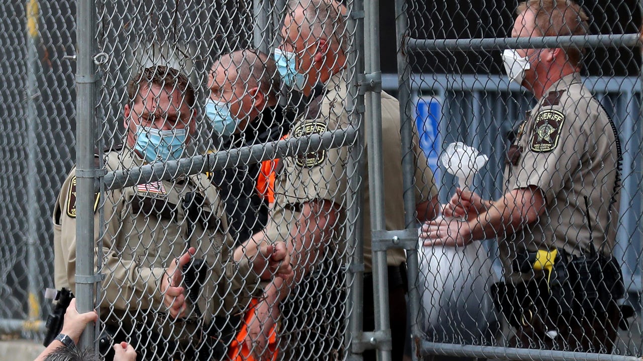 File image of law enforcement officers escorting fired Minneapolis police officer Derek Chauvin from the rear of the Family Justice Center after a motion hearing in Minneapolis. (Photo by David Joles/Star Tribune via Getty Images)