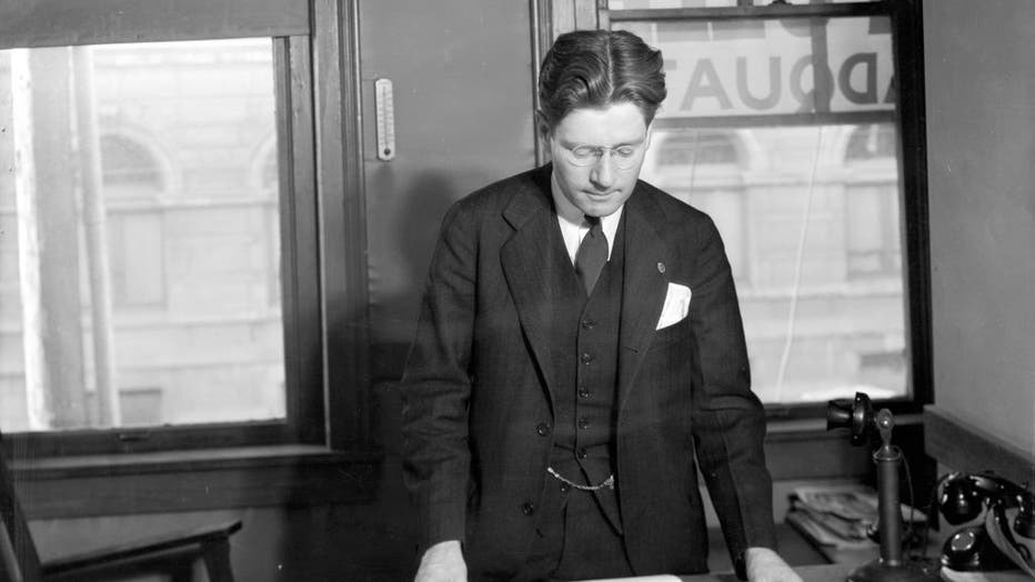 Governor-elect Philip F La Follette reads a telegram at the La Follette campaign headquarters, Madison, Wisconsin, Nov. 5, 1930. (Photo by Angus B. McVicar/Wisconsin Historical Society/Getty Images)