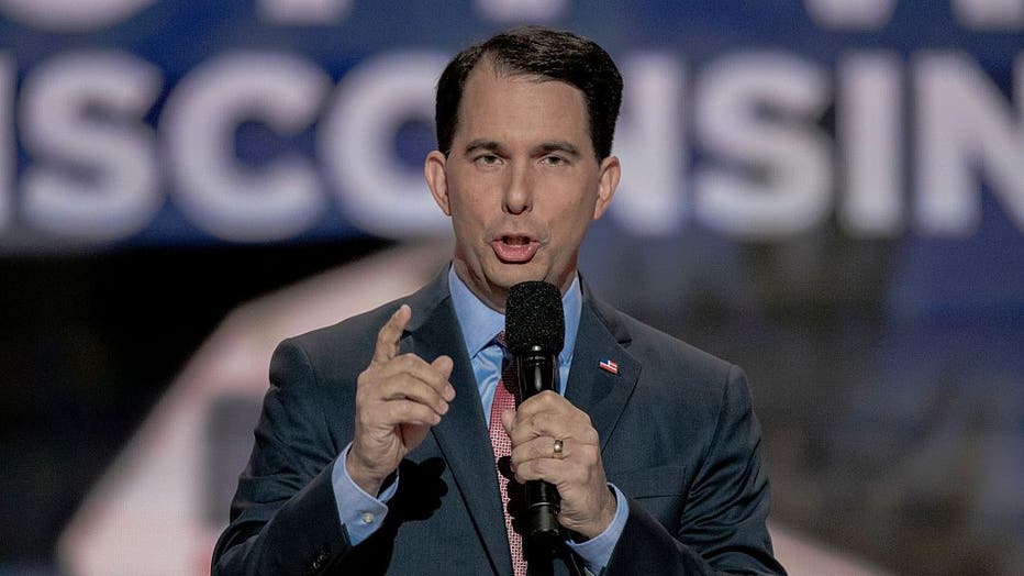 American politician and Wisconsin Governor Scott Walker addresses the Republican National Convention at the Quicken Arena, Cleveland, Ohio, July 20, 2016. (Photo by Mark Reinstein/Corbis via Getty Images)