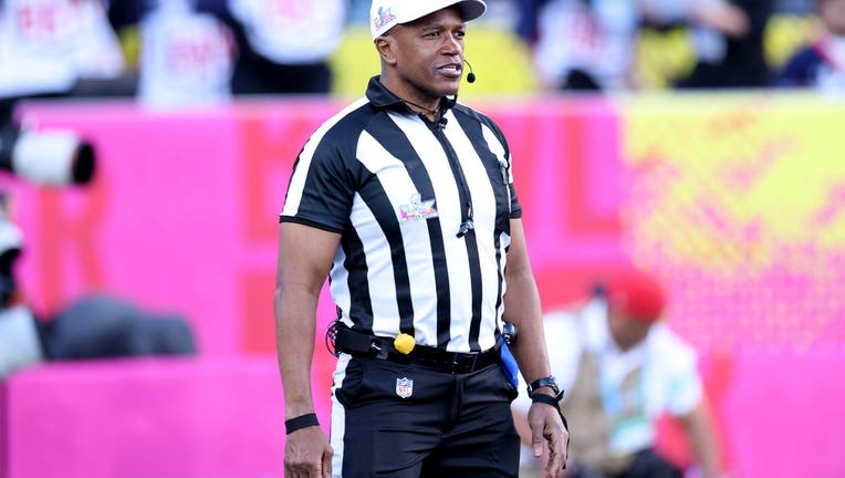 SANTA CLARA, CALIFORNIA - FEBRUARY 08: Referee Shawn Smith looks on prior to the start of Super Bowl LX between the Seattle Seahawks and the New England Patriots at Levi's Stadium on February 08, 2026 in Santa Clara, California. (Photo by Kevin C. Co