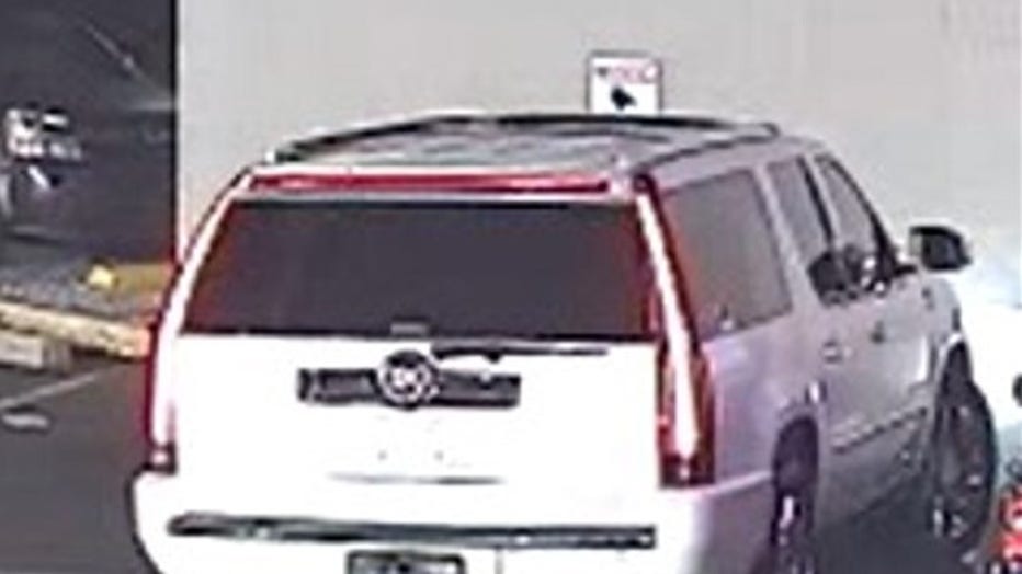 Police said the suspect's vehicle was a white 2015-2020 Cadillac Escalade ESV with no plate. The vehicle had damage to the front end, and a broken grill, and was even missing a bumper and headlights.