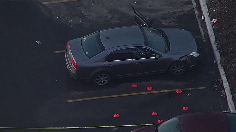 SkyFOX flew over the scene and found several police vehicles with officers assessing the area. Evidence markers littered the area, specifically around a parked vehicle with its driver-side door wide open and what appears to be some damage to the front.