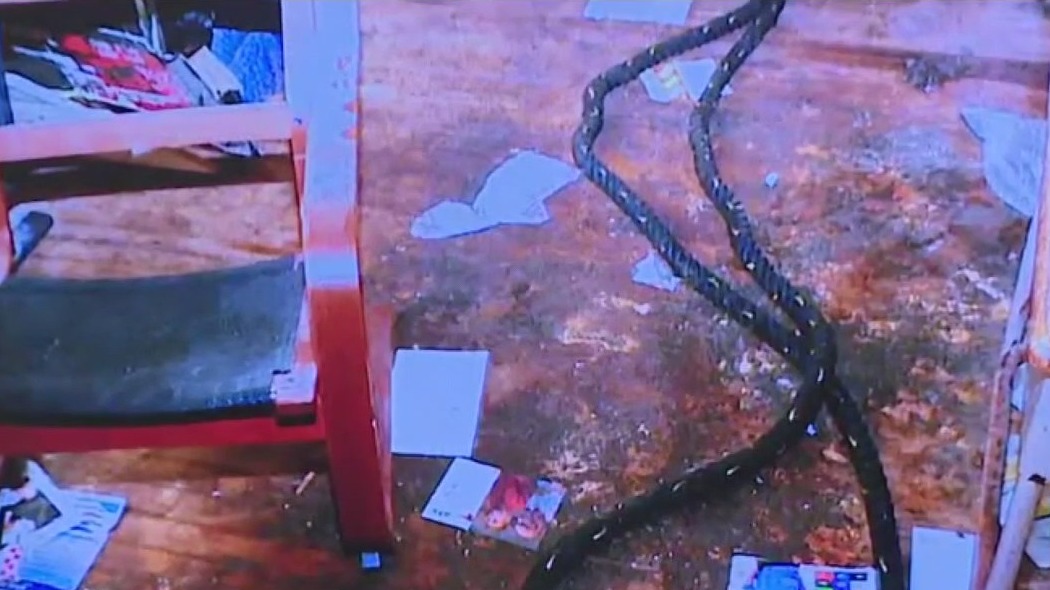 Prosecutors also shared a photo of a chair with a large rope on the floor in the living room. The technician also talked about a bizarre smell from the back porch.