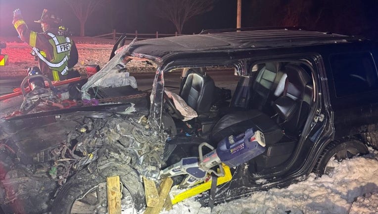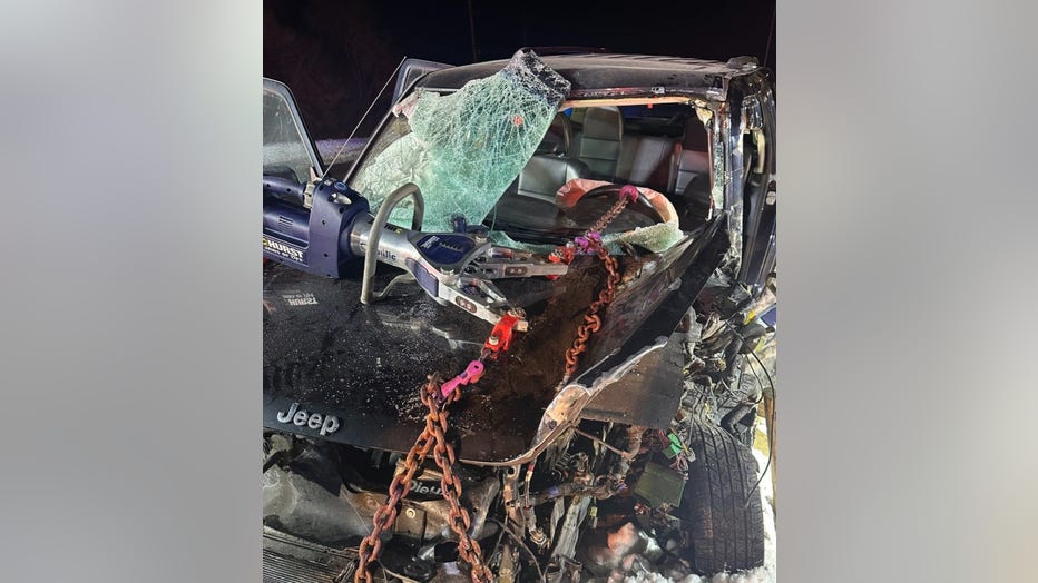 The crash damage was so extensive that it took about an hour to remove the victims from the Jeep and Lexus.