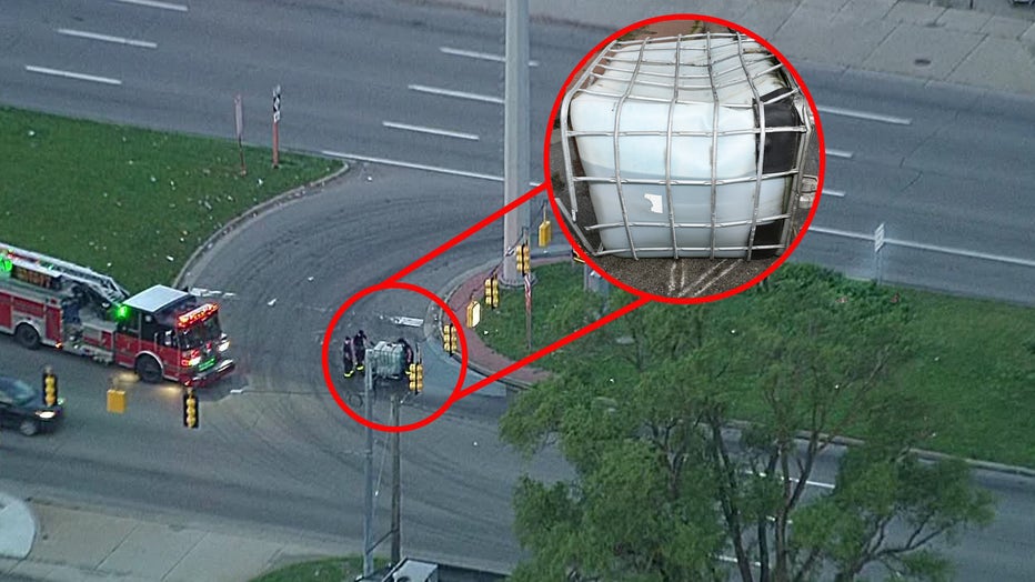 WARREN, Mich. (FOX 2) - Warren police are currently searching for a driver who dropped a large container of antifreeze on Eight Mile and left it Tuesday morning.