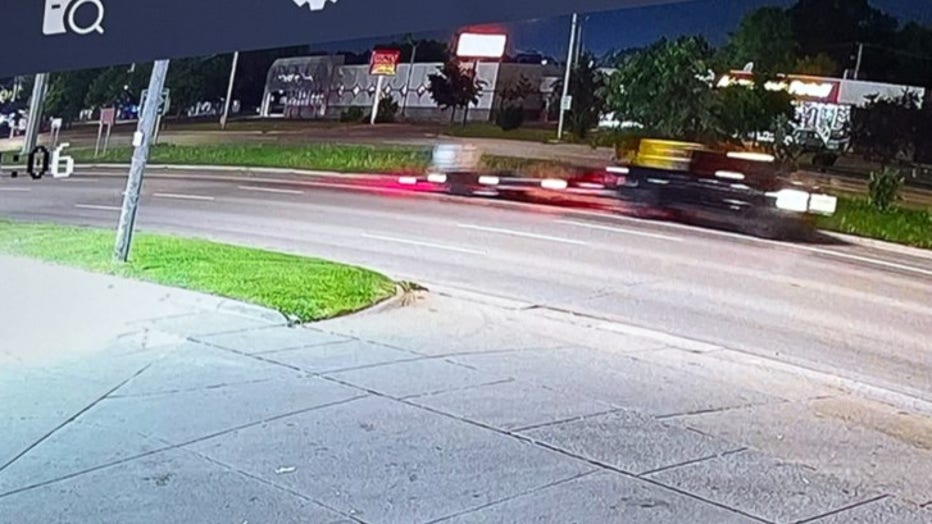 Security video captured a black Ford pickup truck driving on Eight Mile near Van Dyke around 4:20 a.m. Tuesday while pulling a trailer with the container of antifreeze on it. After dropping that container onto the road, the driver continued, leaving it behind.