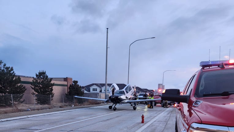 Authorities said a single-engine aircraft, Cirrus SR22T, made an emergency landing on Bangerter Highway and traveled some distance before stopping on the off-ramp to the South Jordan Parkway.