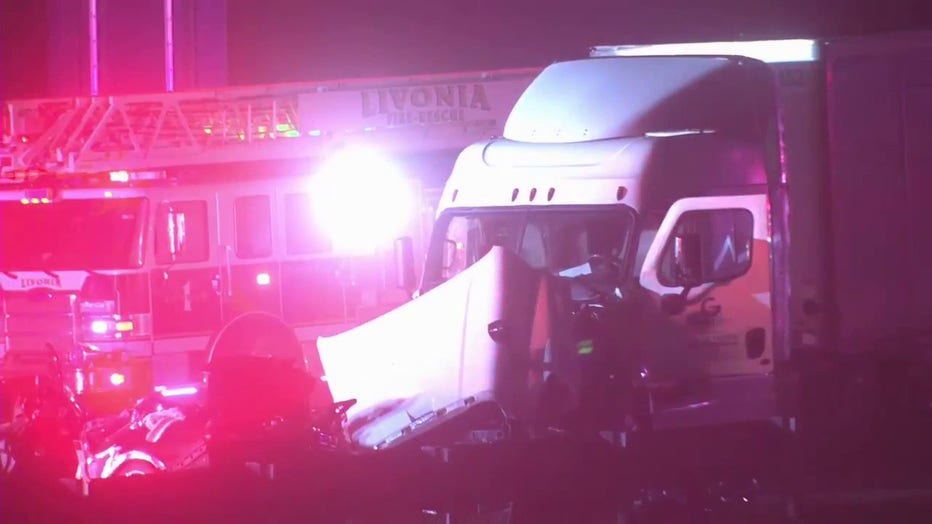 The crash, first reported just before 4 a.m. Thursday by the Michigan Department of Transportation, prompted a large police response that continues to block the freeway.