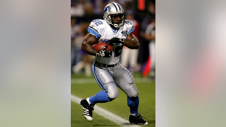 MINNEAPOLIS - OCTOBER 12: Rudi Johnson #32 of the Detroit Lions carries the ball against the Minnesota Vikings at the HHH Metrodome October 12, 2008 in Minneapolis, Minnesota. (Photo by Matthew Stockman/Getty Images)