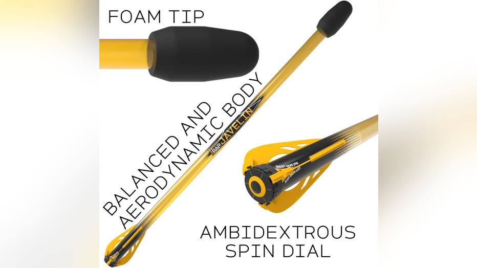 Elevate your outdoor play with the Bad Rap Javelin, an innovative throwing toy that combines skill and safety for endless entertainment. This sleek yellow and black javelin features a unique ambidextrous spin dial that lets both right and left-handed players achieve perfect throws. The soft foam tip ensures safe landings while maintaining impressive flight capabilities. | Buy It
