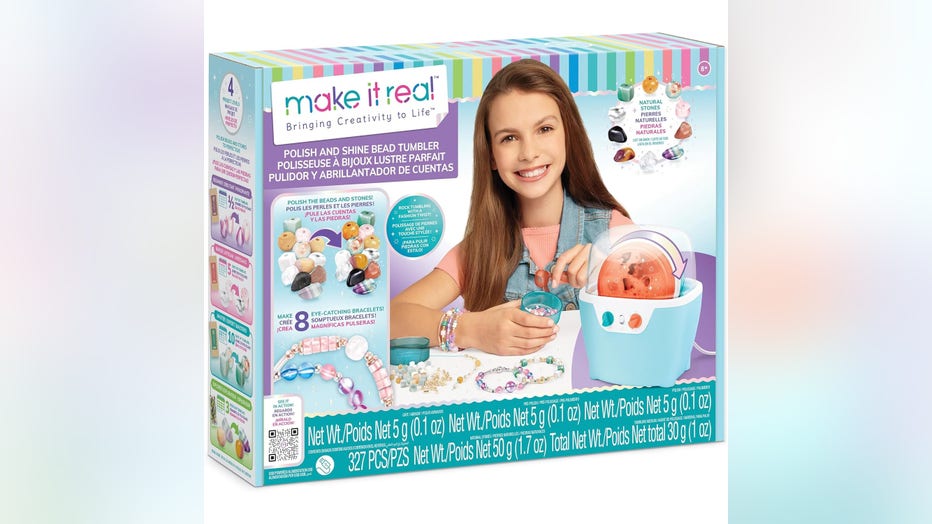 Combining the fun of bracelet making and stone polishing, this kit transforms rough pre-drilled stones and beads into stunning, polished treasures in a fraction of the time and with less mess than traditional rock tumblers. Instructions guide young jewelers through simple steps: place the beads in the tumbler, add water and polishing materials, then turn the dial and flip the switch to tumble and reveal each stone’s natural beauty. The kit includes enough materials to create 8 bracelets featuring a collection of metallic and glass beads, as well as ten kinds of natural stones. | Buy It