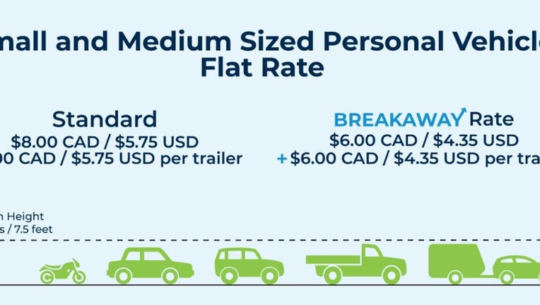 Passenger vehicles will pay a standard toll of $5.75 USD/$8 CAD per crossing on the Gordie Howe International Bridge, while registered Breakaway members receive a 25 percent discount, lowering the rate to $4.35 USD/ $6 CAD.