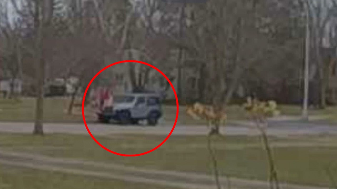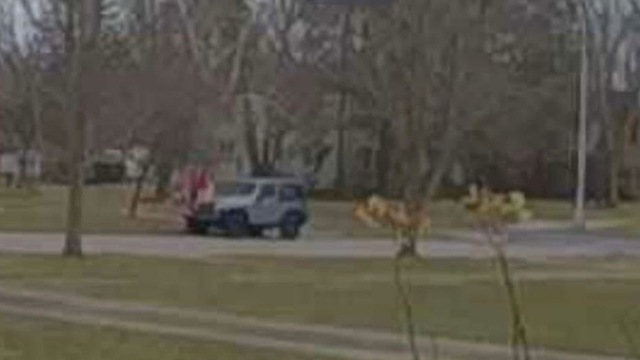 Officials say the suspect then noticed the children's parents and left northbound to Mack in a silver 2-door Jeep Wrangler.