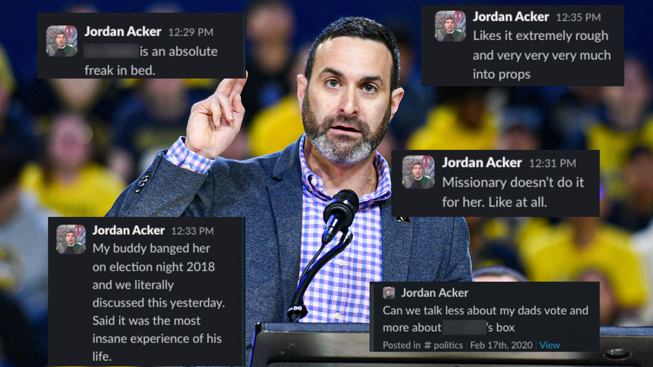 ANN ARBOR, Mich. (FOX 2) - A bombshell report by The Guardian, potentially shaking up a critical primary election, as reported leaked messages reveal obscene sexual comments allegedly made by University of Michigan Regent Jordan Acker, the high-profile university official who previously led UM’s campaign against pro-Palestinian students.