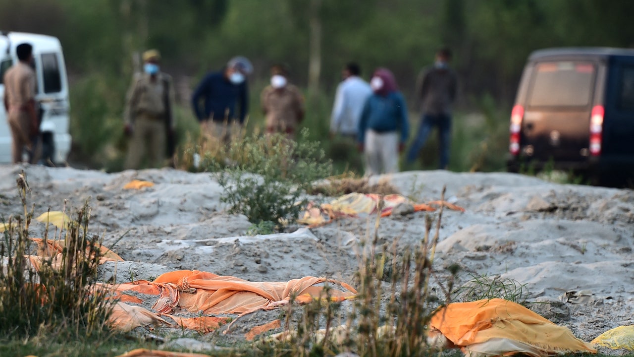 On Friday, rains exposed the cloth coverings of bodies buried in shallow sand graves on a wide, flat riverbank in Prayagraj, a city in Uttar Pradesh state. While officials say the riverside burials have taken place for decades, the sheer numbers in the shadow of the pandemic are focusing more attention on the practice.