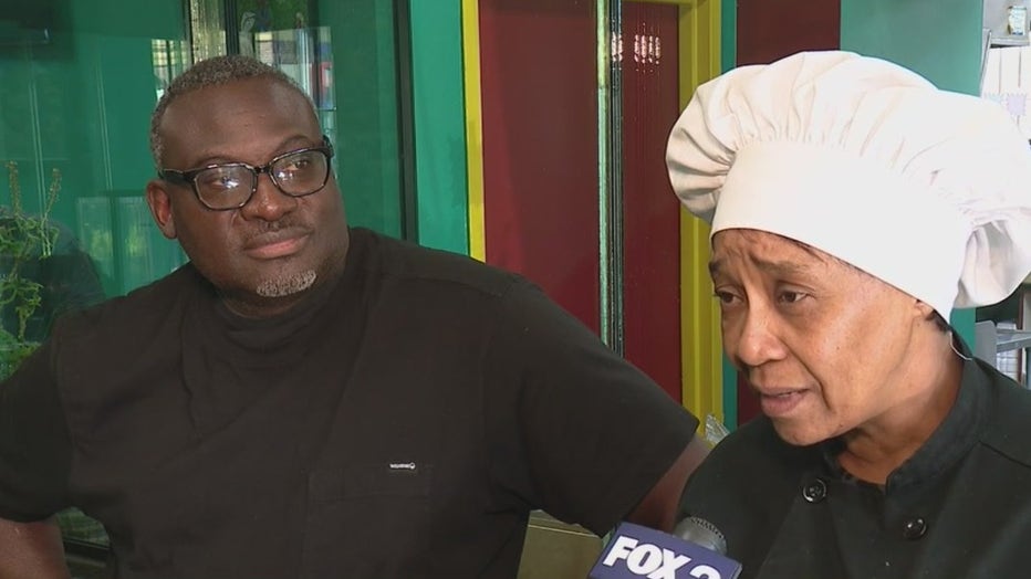 Chris Mitchell, left,Island Spice Caribbean restaurant owner and Sandra Reid Hutchinson, manager and chef.