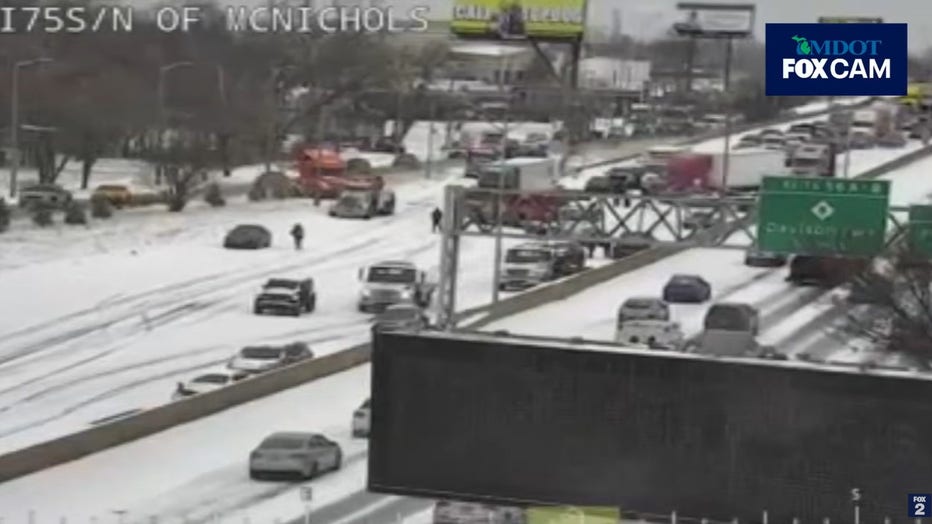 "Some of the semis may have struggled, some of the cars may have struggled, whatever it is this is probably going to (last) the majority of the day," said Diane Cross of MDOT in a phone interview with FOX 2. "At the moment we have northbound 75 closed at McNichols. Don't be surprised if we move that back to the Davison so that traffic can move freeway to freeway."