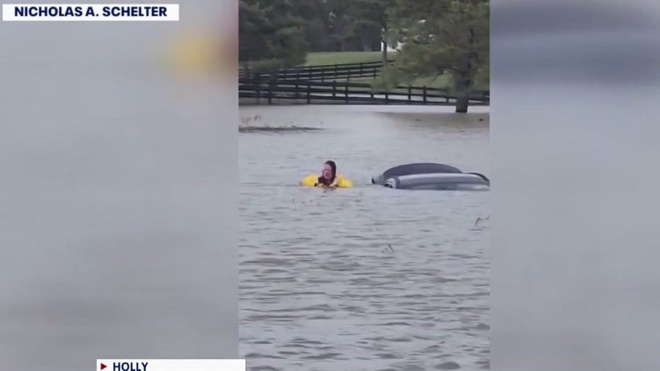 "The fence was completely underwater where her car was," he said. "Her significant other showed up and he was already in the water and brought her to us and we took care of her."