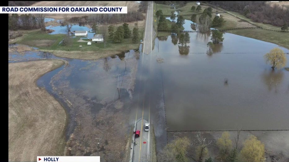 HOLLY, Mich. (FOX 2) - North Holly Road remains closed Monday evening after heavy rainfall on Saturday led to massive flooding in southeast Michigan.