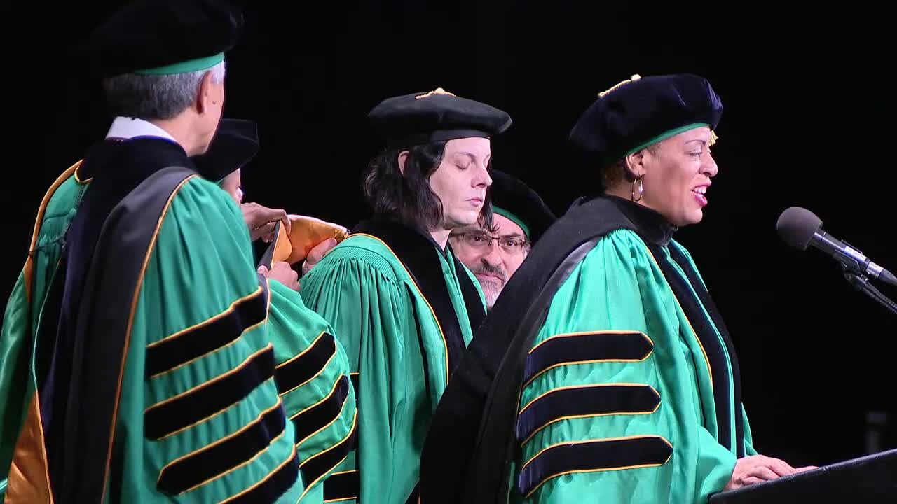 Musician and Detroit native Jack White received an honorary doctoral degree Friday from Wayne State University.