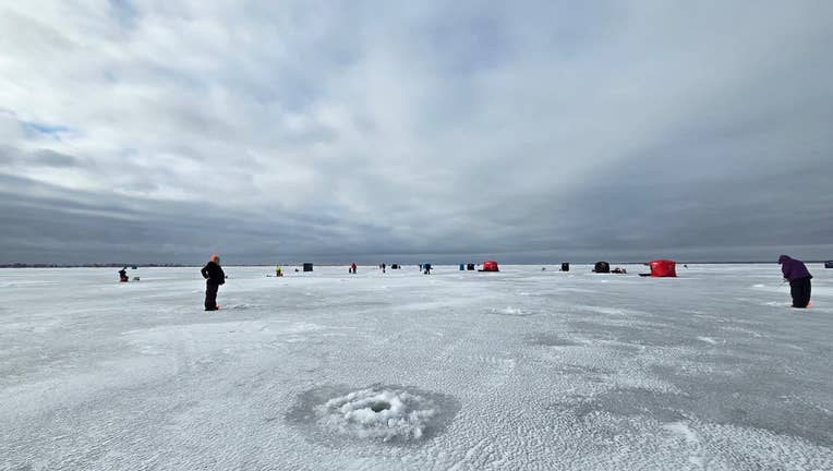 Ice fishing on Lake St. Clair. Photo courtesy of the Michigan DNR.