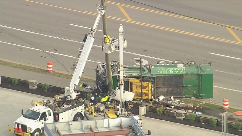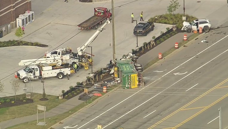LAKE ORION. Mich. (FOX 2) - A crash near a gas station in Lake Orion left a garbage truck on its side and a road blocked off.