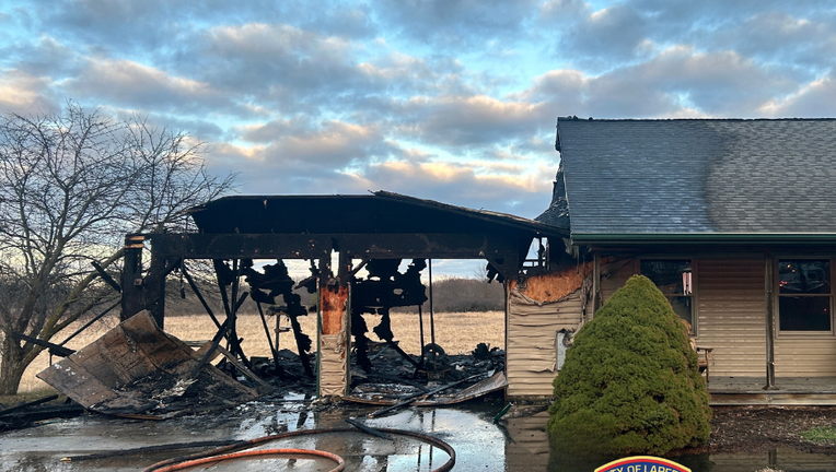 LAPEER TWP., MI (FOX 2) - A garage fire in the 2100 block of Baldwin Road was contained before spreading to the house, despite crews being briefly delayed by a train around 6:30 p.m. Monday night.