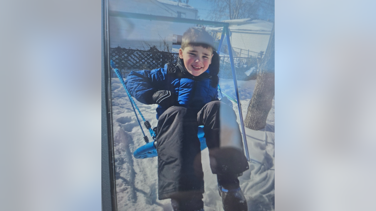 He is described as 4 foot tall, about 65 pounds, wearing a blue and black winter coat and matching boots.