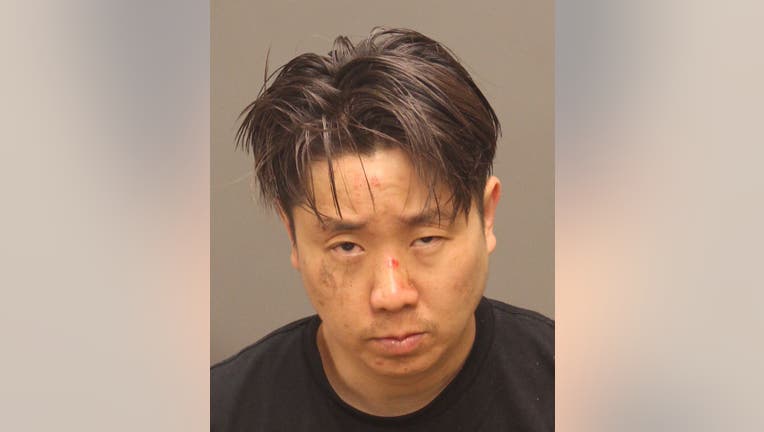 According to police, a resident called 911 around 1:40 a.m. Saturday to report that a man dressed in all black was stabbing their door with a knife and trying to kick in the door. When officers arrived, they found Peter Chan-Woong Chung, 37, on the porch stabbing the door.
