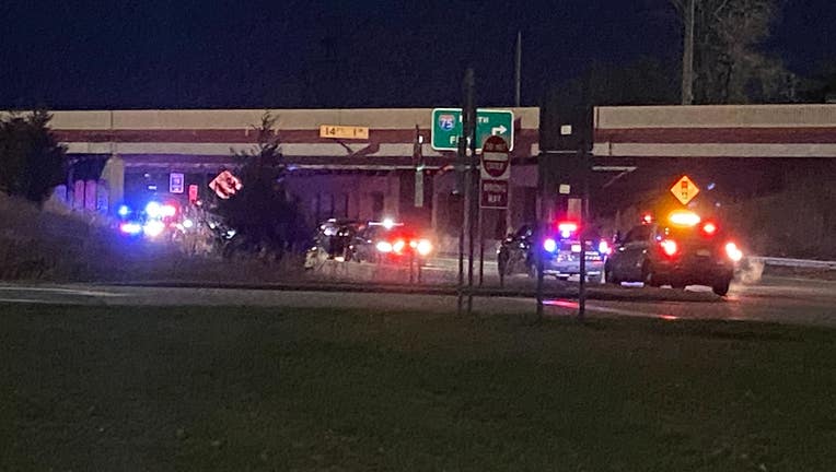 Police on scene for crash on I-75 at the exit ramp for Joslyn.