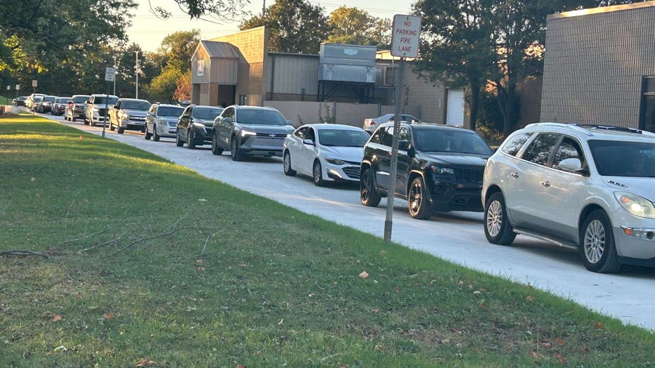 Cars line up for water distribution in Melvindale. Photo by Melvindale police.
