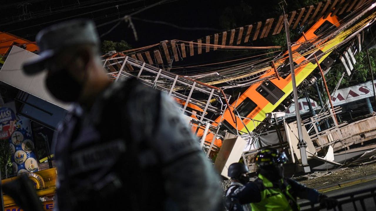 A general view shows the site of a train accident after an elevated metro line collapsed in Mexico City on May 4, 2021. (Photo by PEDRO PARDO / AFP) (Photo by PEDRO PARDO/AFP via Getty Images)